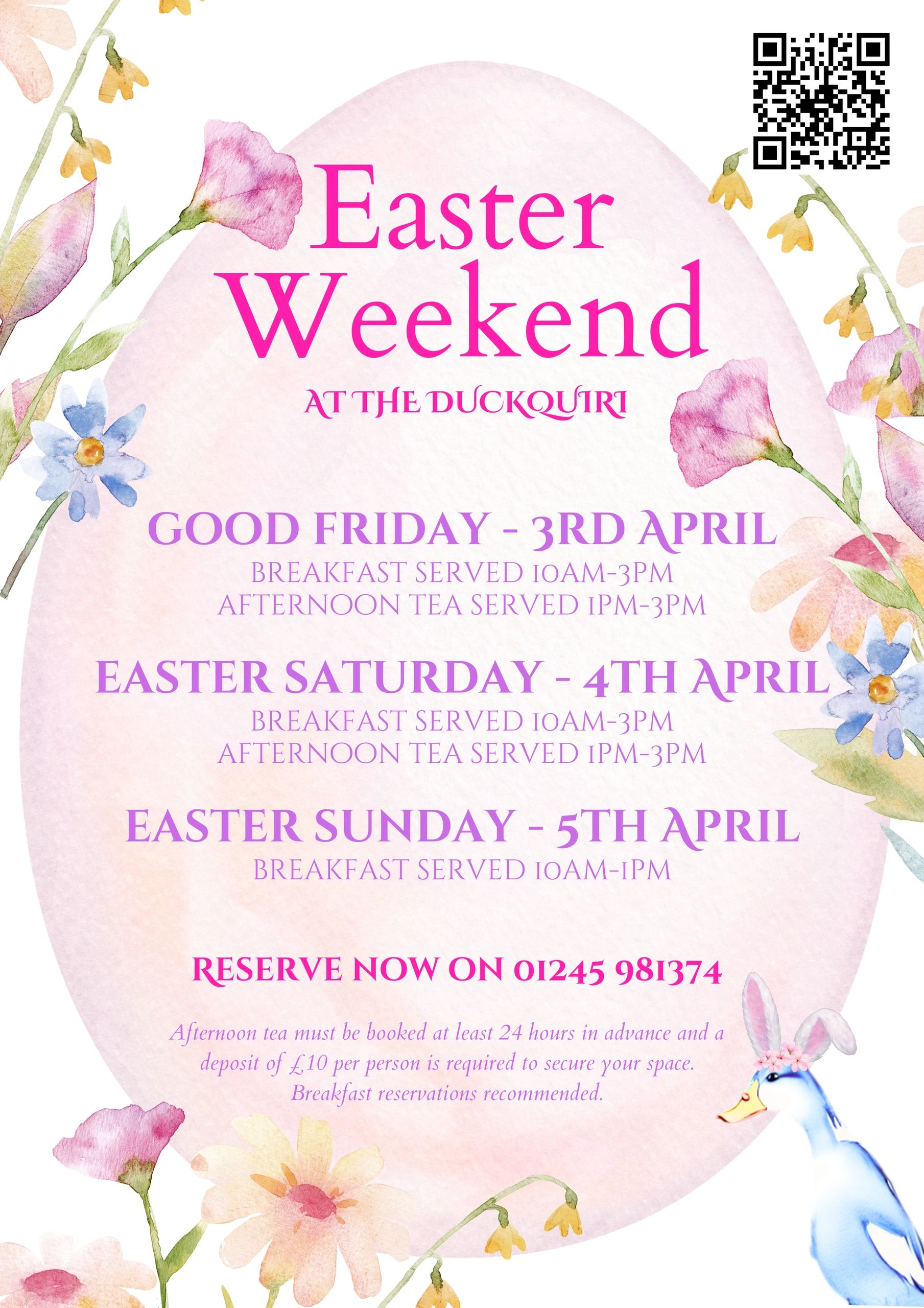 This Easter weekend we are running a breakfast service and then an Afternoon Tea service on Good Friday and Easter Saturday, followed by just a breakfast service on Easter Sunday.